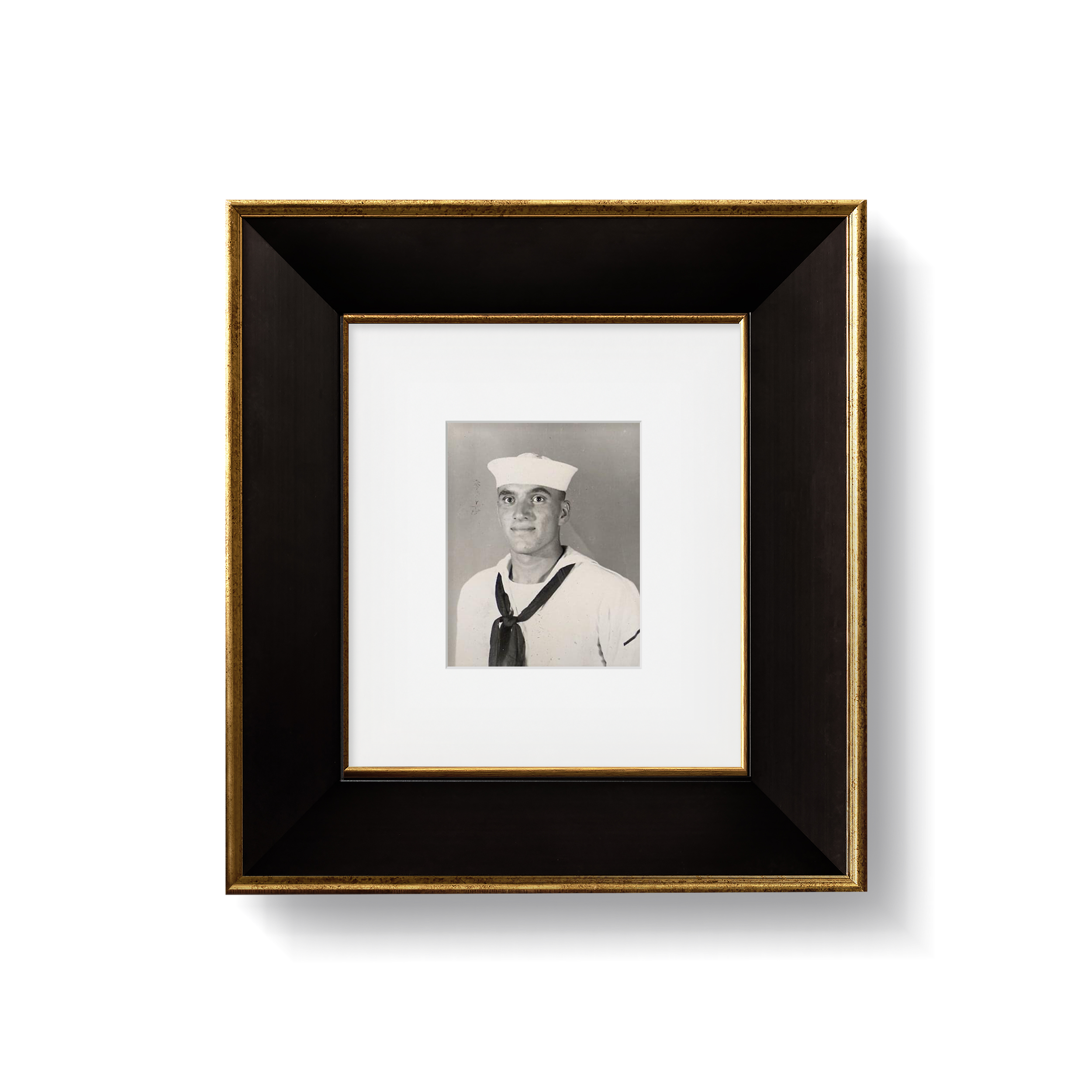 Inspired by the charm and character of classic English homes. our new British Country Collection gives your space that lived-in look of pieces gathered over time.This matte black frame with gold trim has a flat profile. creating a mat-like effect around your art. We recommend it with large art. like paintings and landscapes.