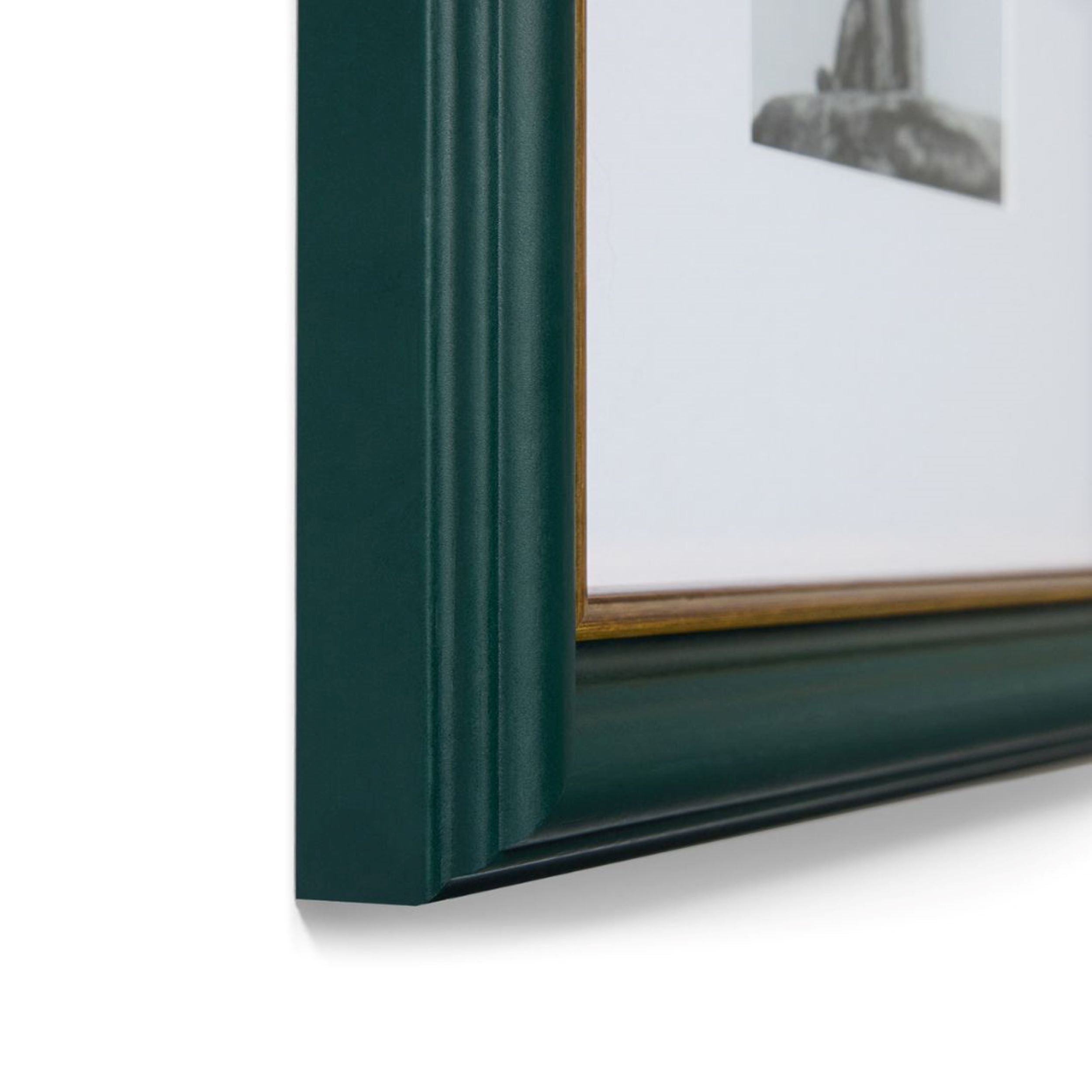 Inspired by the charm and character of classic English homes. our new British Country Collection gives your space that lived-in look of pieces gathered over time.Inspired by British racing green. this versatile and classic matte green frame with hand-leafed gold trim complements botanicals and portraits beautifully.